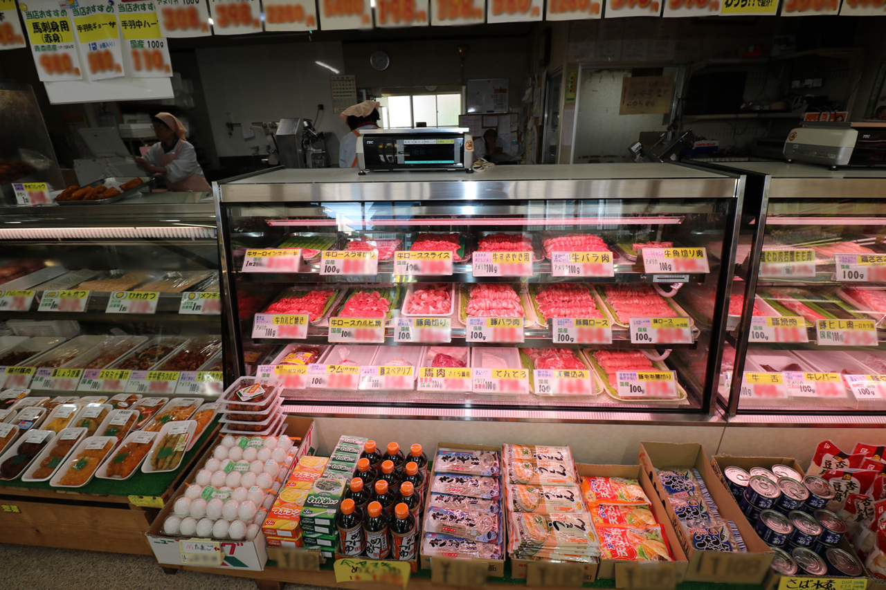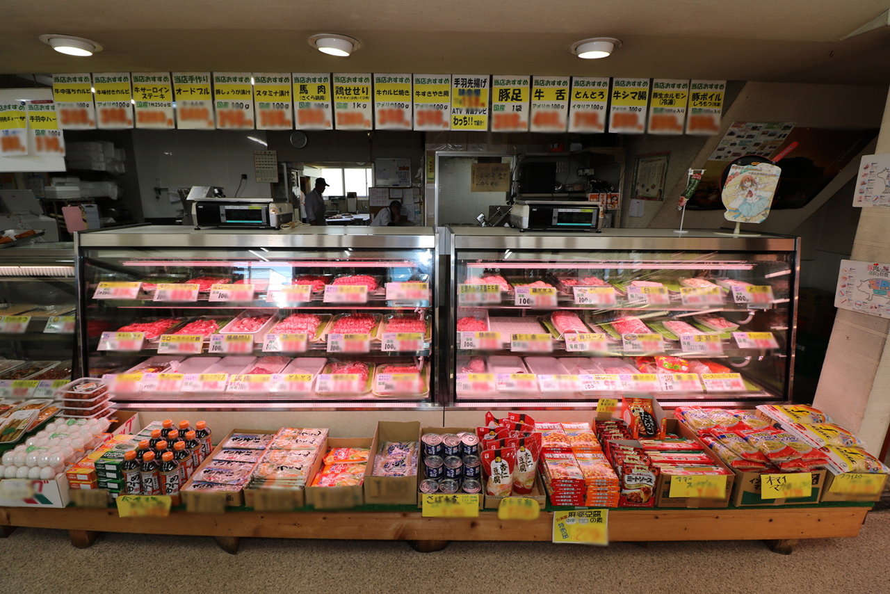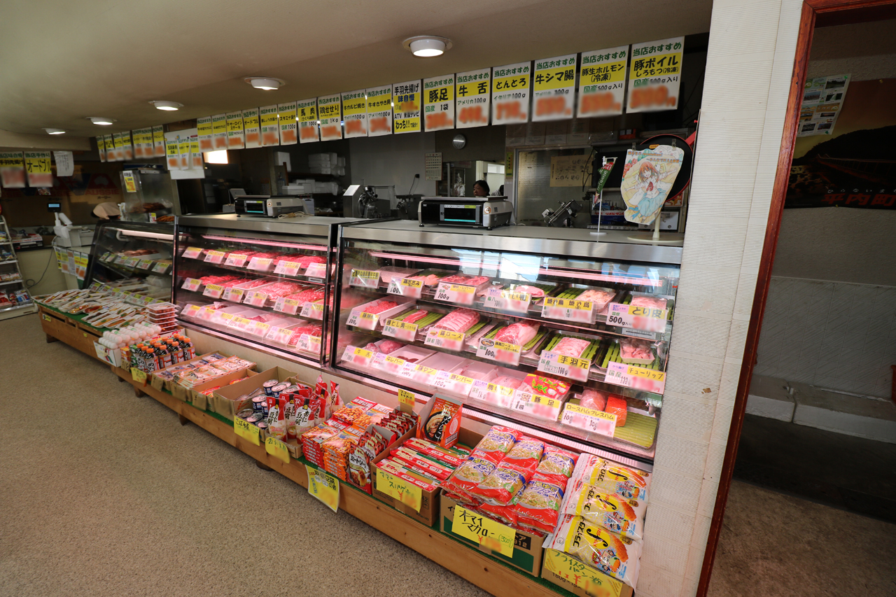 中棚3段、計4段+中棚2段、計3段の精肉ケース。