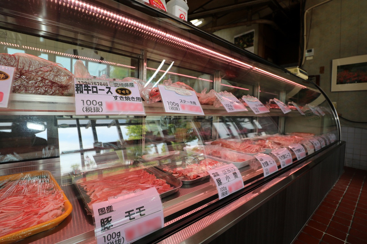 冷蔵のショーケース全てに精肉がよく映える色温度のLED照明を搭載。