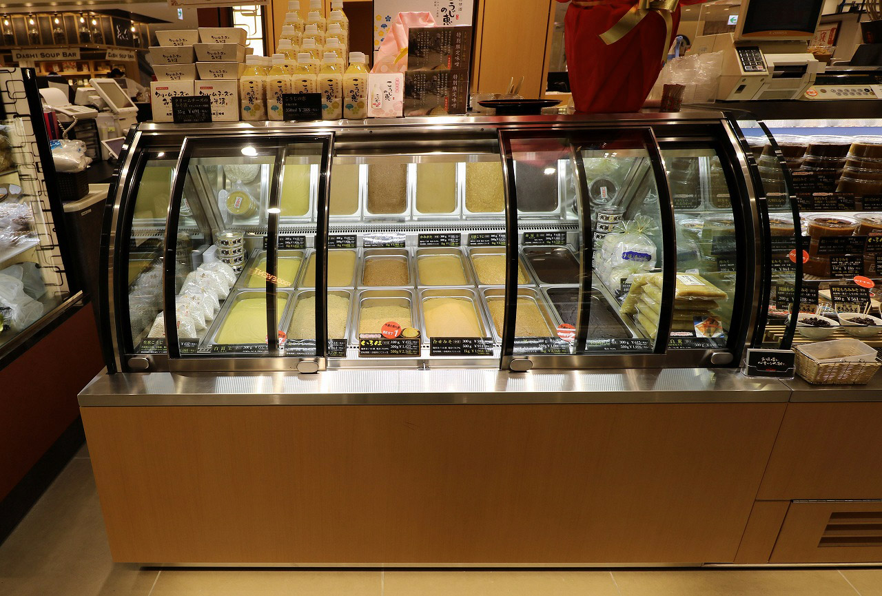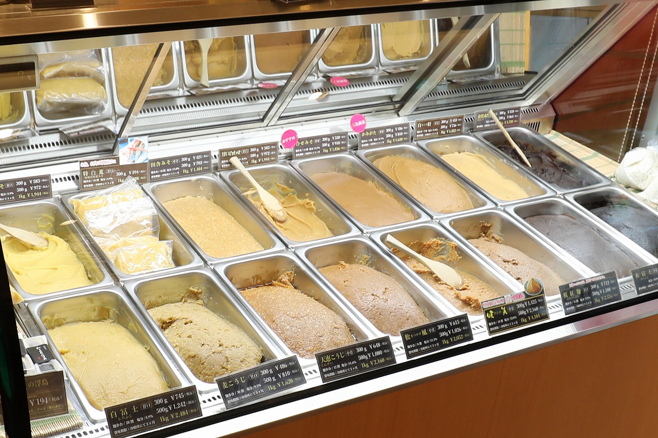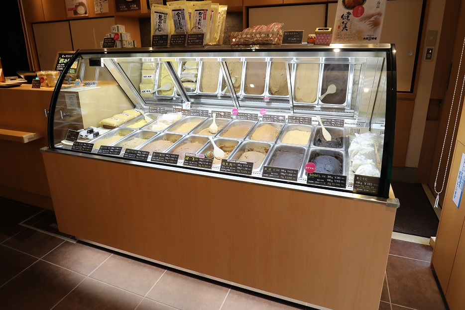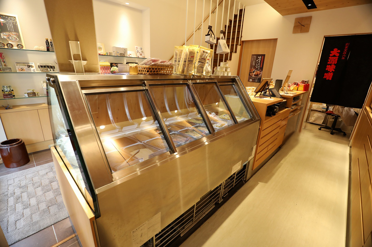 味噌の鮮度を保ちながら、和風の内装に調和したデザインとショーアップ効果で商品をより魅力的に引き立たせ、味噌を選ぶ楽しさを味わえます。