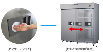 ハンドルを握らずタッチするだけでラクラク自動開閉が可能なため清潔に作業ができます。