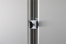 万一のトラブルに備え、本体にカギを取り付けることができます。左右の扉を1個のカギで施錠します。