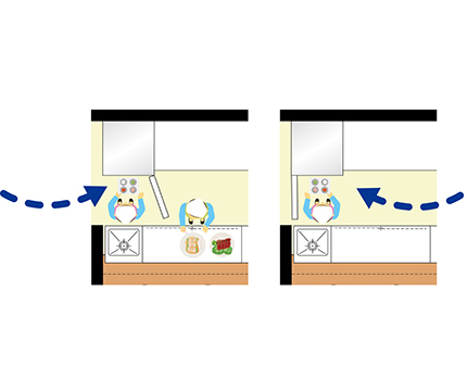 『両開き扉』なら、右からも左からも冷蔵庫の開閉