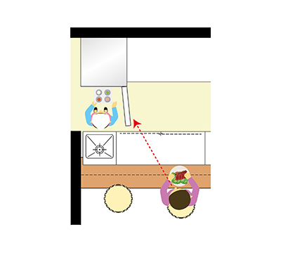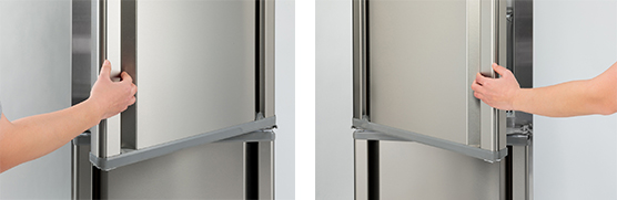 冷蔵庫の見える位置にお客さまがいる場合、庫内を見られずに目隠しできる方向に扉を開閉できます。