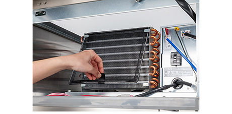 コンデンサーをホコリから守るエアフィルターは、手軽に取り外せるので洗浄もラクラク。