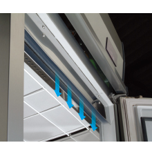 扉を開いた状態でも、庫内入口から噴き出すエアカーテンが、温度変化を最小限に食い止めます。